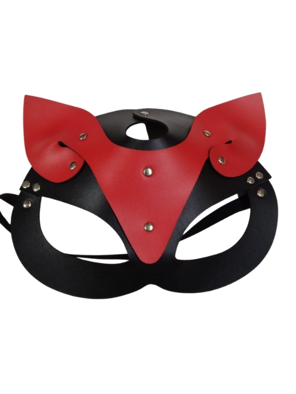 Censan Deri Kedi Kız Maskesi Siyah Kırmızı