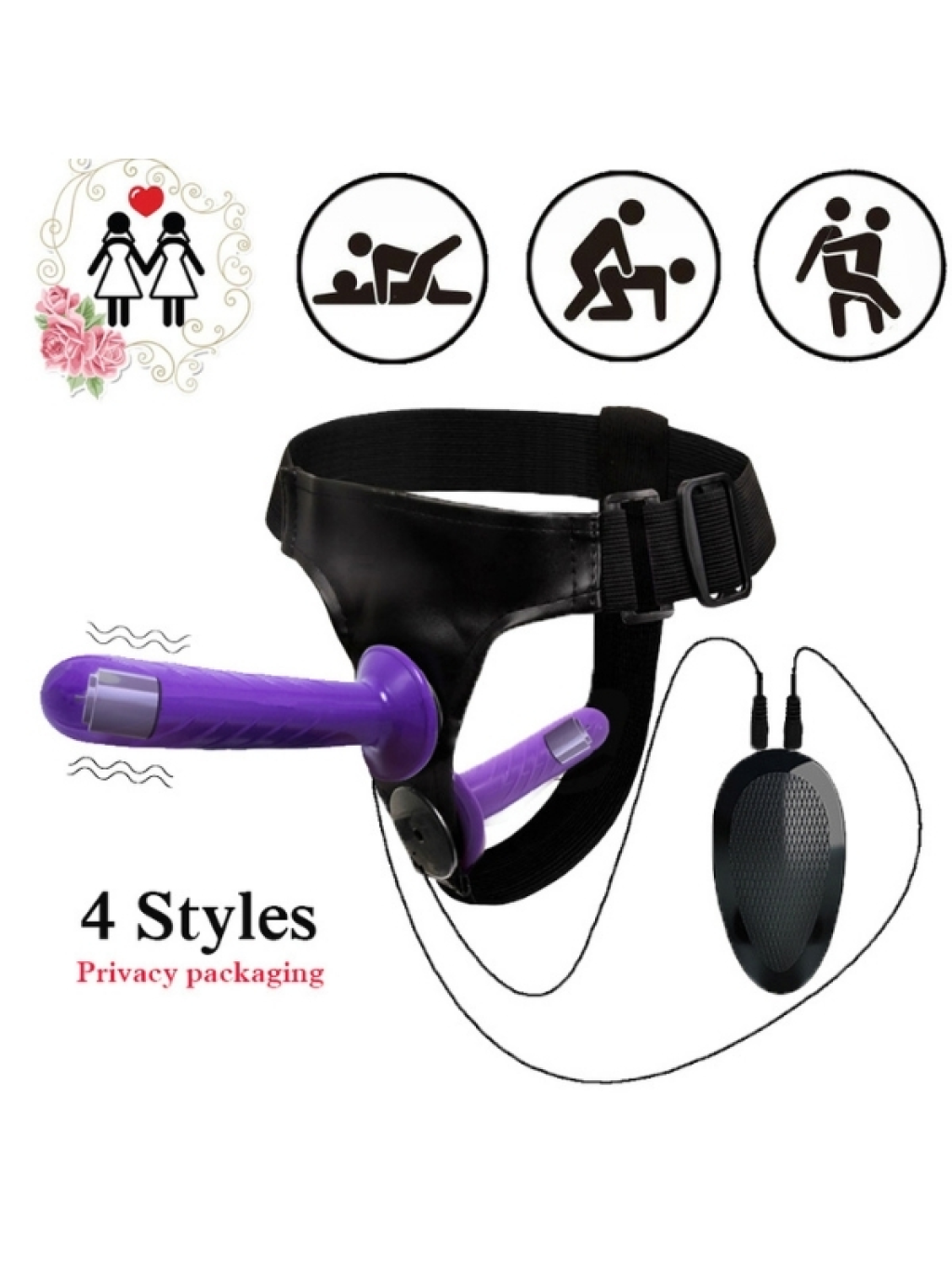 Censan Mor Double Dong Titreşimli Belden Bağlamalı Çift Taraflı Bisex Dildo Vibratör