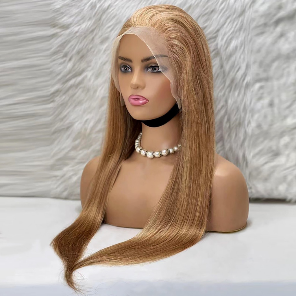 Düz Front Lace Gerçek Tül Peruk - Sıcak Karamel - 70-75cm
