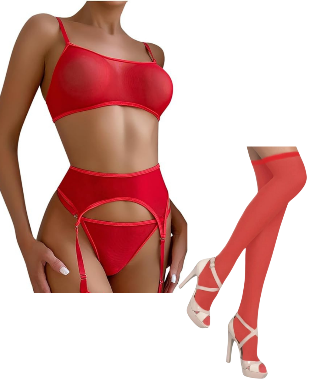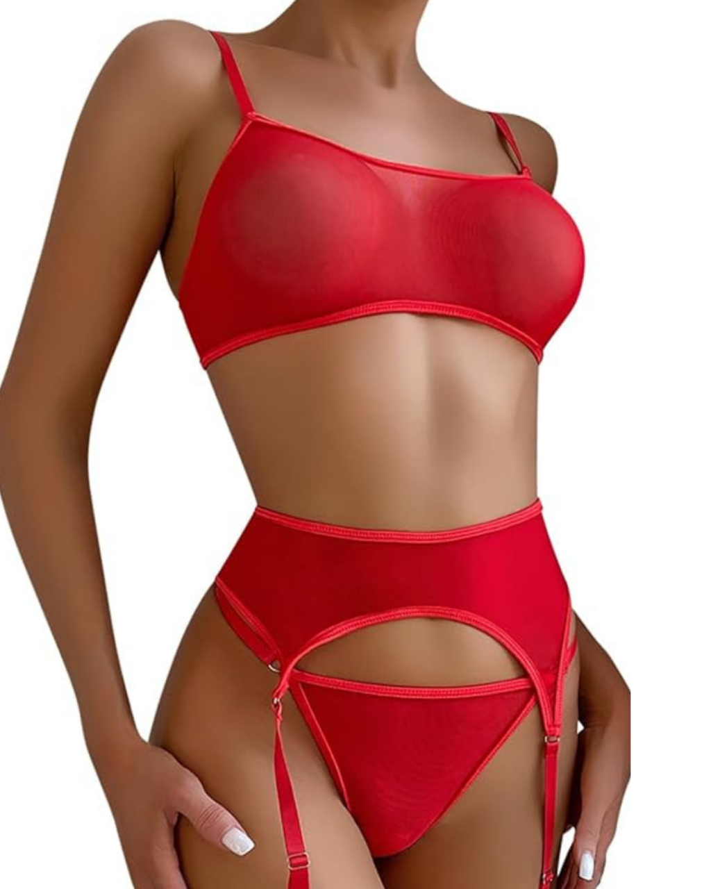 Fantezi Kırmızı Transparan Tül Jartiyer Takımı BC3264