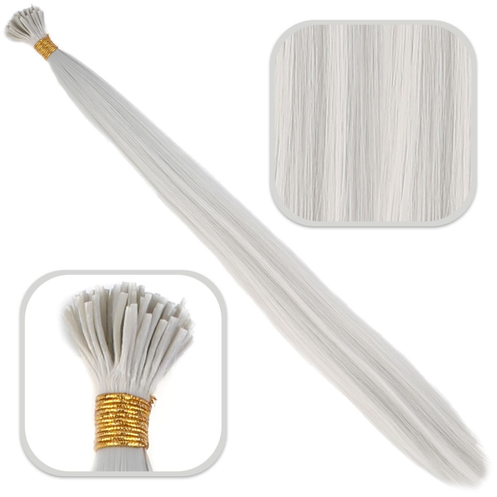 Fiber Sentetik Boncuk Kaynaklık Renkli Saç - Açık Gri - 100 Adet