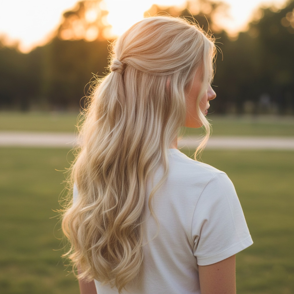 Fiber Sentetik Dalgalı Yarım Ay + 2 Yan Çıt Çıt - Kumral Beyaz Platin Röfleli