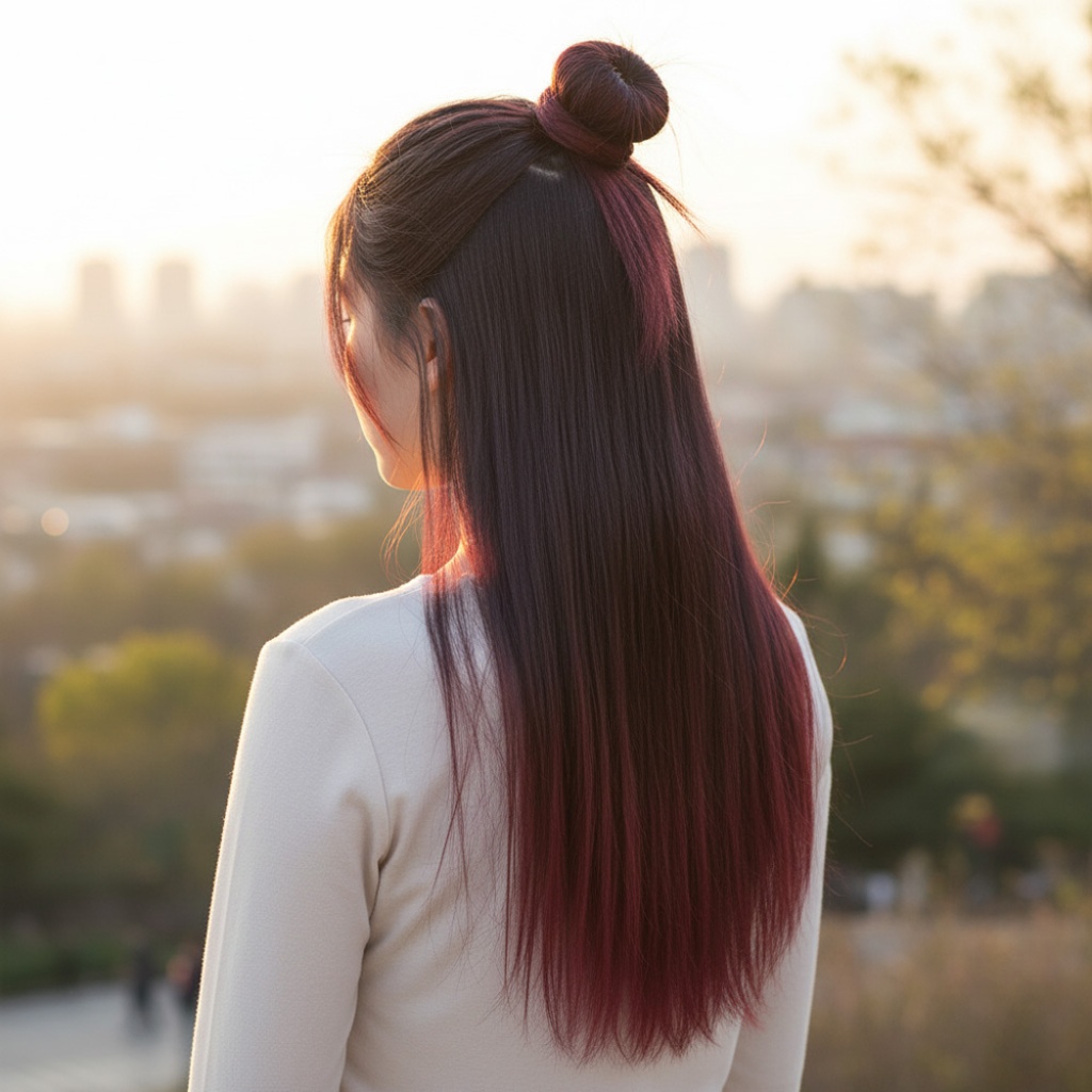 Fiber Sentetik Düz Yarım Ay + 2 Yan Çıt Çıt - Koyu Kızıl