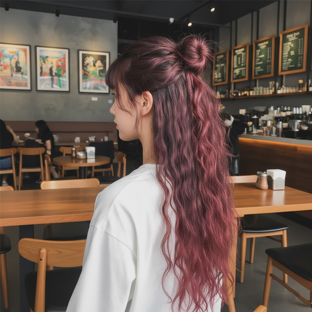 Fiber Sentetik Kabarık Dalgalı 8 Parça Çıt Çıt - Koyu Kızıl