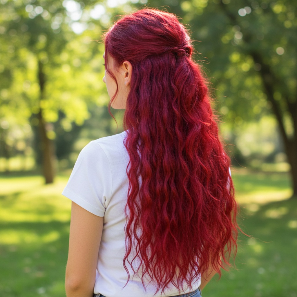 Fiber Sentetik Kabarık Dalgalı Yarım Ay + 2 Yan Çıt Çıt - Kızıl