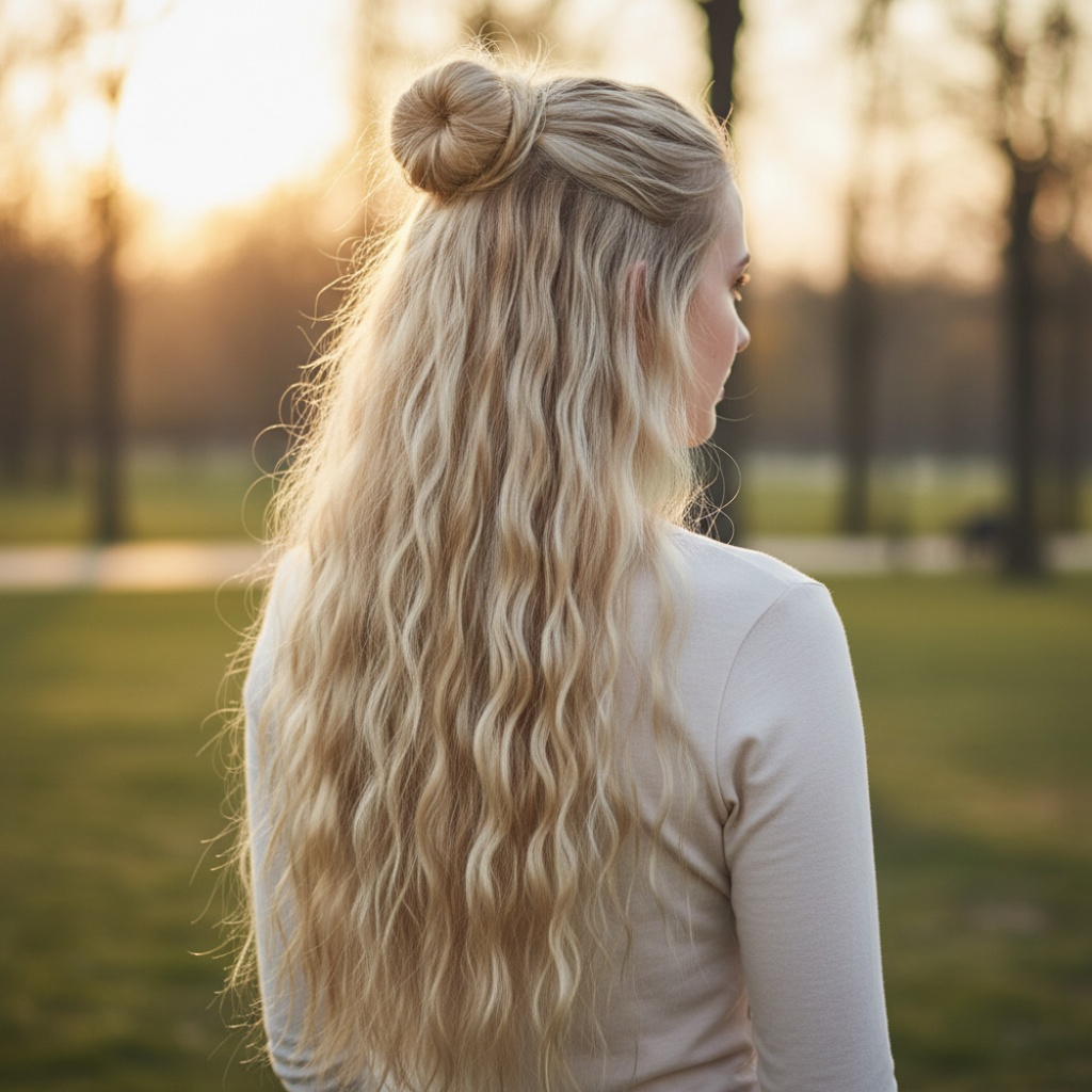 Fiber Sentetik Kabarık Dalgalı Yarım Ay + 2 Yan Çıt Çıt - Kumral Beyaz Platin Röfleli