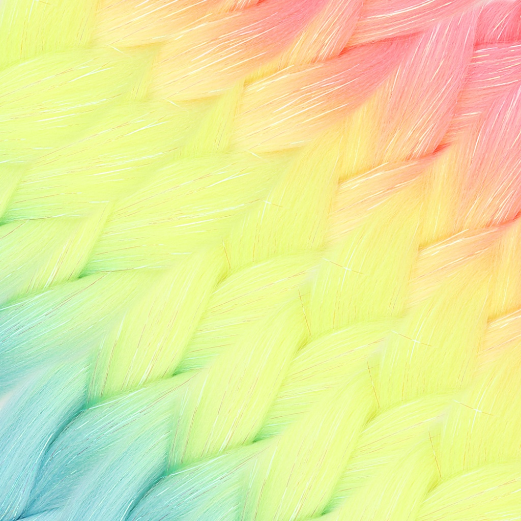 Simli Fuşya / Neon Sarı / Açık Mavi Ombreli Örgülük Saç 100 Gr.