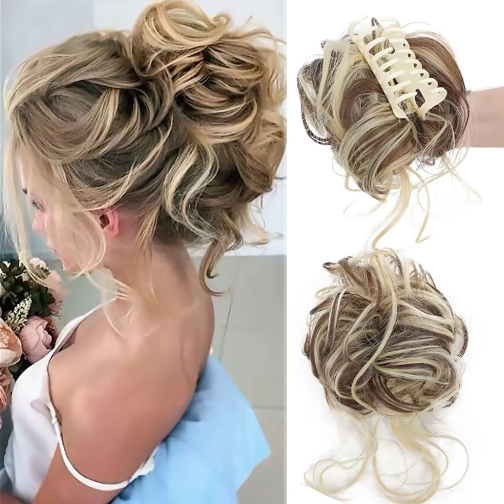 Tokalı Kuyruklu Dağınık Topuz - Kahverengi Platin Röfleli