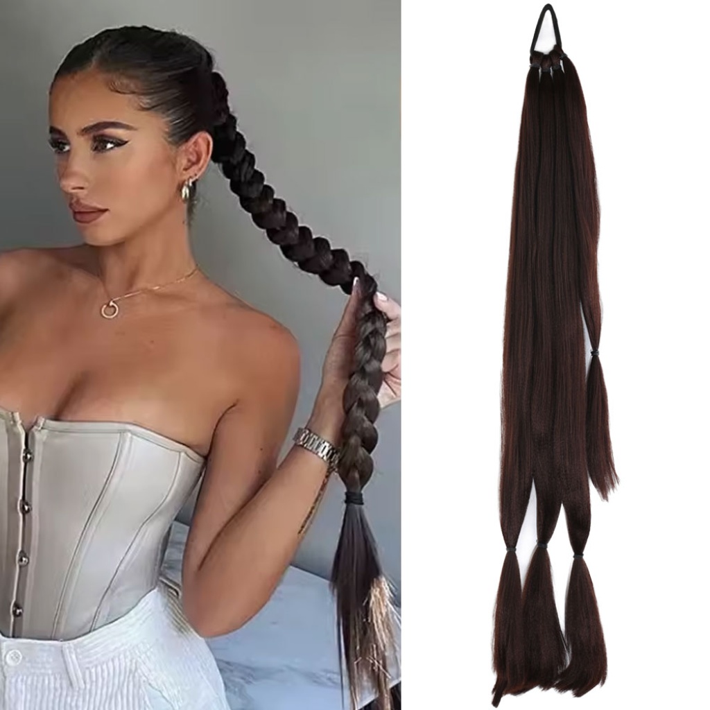 Üçlü Örgü Tokalı At Kuyruğu - Kahverengi