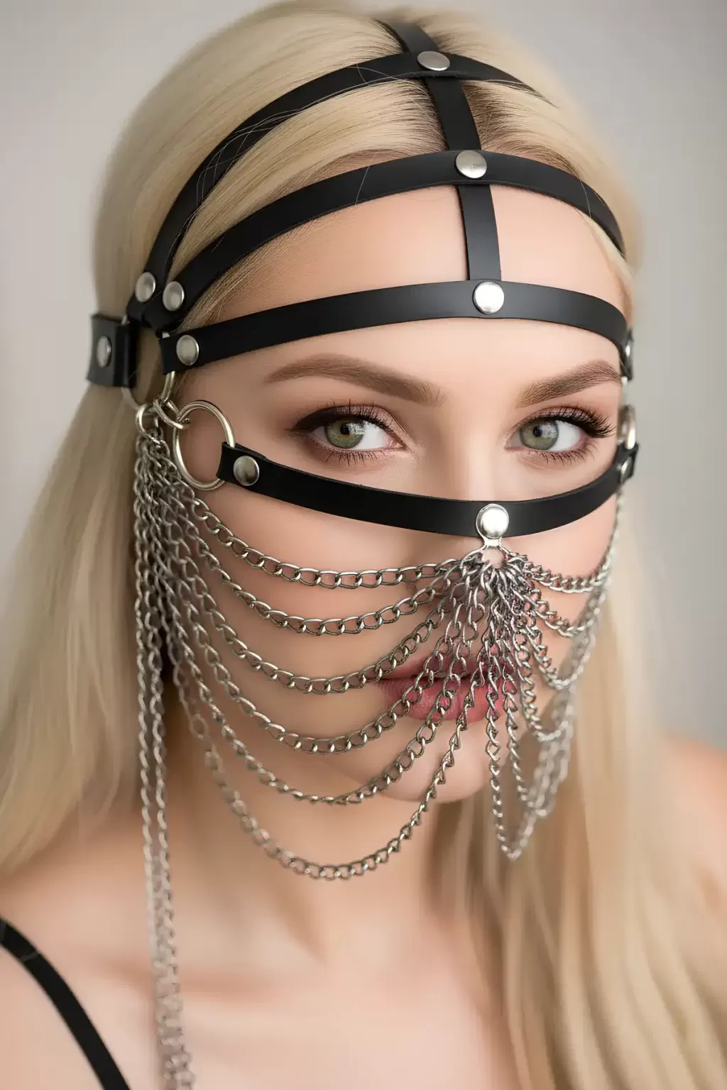 Zincirli Deri Seksi Maske - APFT465